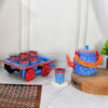 HandPainted Alluminium Tea Kettle with 6 Glasses and Wooden Tray For Home Decor , Tea Party , Serving