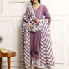 Women’s Cotton Ethnic Set with Kurta, Palazzo & Dupatta(L)