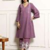 Elegant Embroidered Cotton Kurta Pant Set ? Chic & Comfy (Size M)