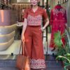 Elegant Embroidered Cotton Kurta Pant Set ? Chic & Comfy (Size M)